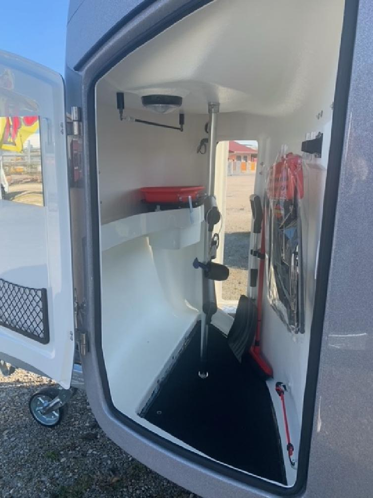 Sattelkammer mit ausziehbarem Sattelhalter, Besen, Netz, Spiegel, Boxenstangen-Zusatzpolsterung, Gummi auf Beladeklappe (integrierte Trittleisten) und Seitenstop, Gummiboden verklebt und versiegelt, Multi Safe System (Sicherheitsboxenstangen-System), PVC-Klarsichttrennwand mit PVC-Oberteil, Seitenpolsterung (2 Stück), Trittschutz seitlich, Kunststoff (schwarz), Boxenstangen-Zusatzpolsterung